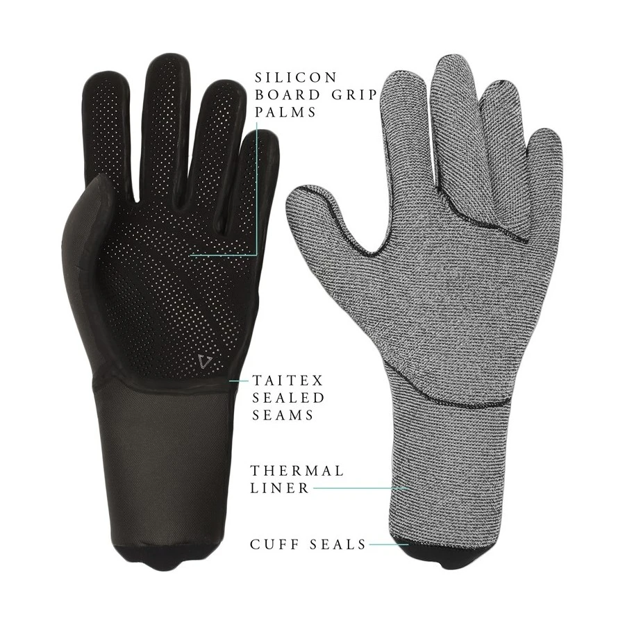 A l’extérieur du gant on retrouve la présence d’une matière coupe-vent sur le dessus de la main, des galonnages sur les coutures pour éviter les entrées d’eau. Un imprimé en silicone apporte du grip. A l’intérieur, le lining emprisonne la chaleur et permet un séchage plus rapide.